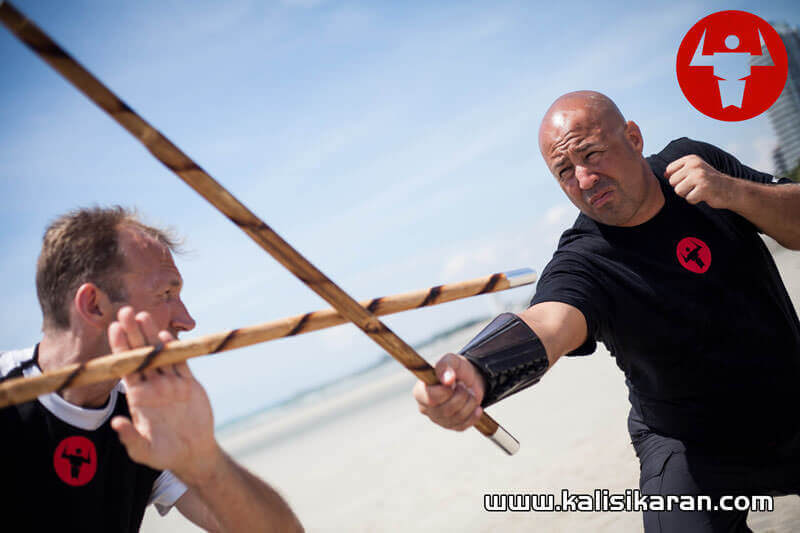 Knivförsvar är en känd specialitet inom de filippinska arterna. Knivanvändande är vanligt på Filippinerna och därför har en unik knivförsvarsträning har utvecklats som idag tränas och lärs ut till bland annat polis och militär runt om i världen. Inledningsvis går Kali Sikaran-medlemmarna på speciella knivförsvarskurser innan knivförsvarsträningen tar vid på mer avancerad schemalagd träning.